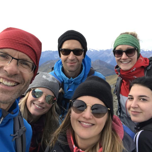 Fast komplett machten wir uns donnerstags auf den Weg nach Wattens in Tirol zur Lizumer Hütte. Dort ist Tobias Spechter seit 1. Juni Hüttenwirt. Während beim Aufstieg am Donnerstag noch viele Wolken die Sicht behinderten, begrüßte uns am Freitag morgen strahlender Sonnenschein, sodass wir uns nach einem zünftigen Hüttenabend mit Gesellschaftsspielen (Wessen Team war regelmäßiger Sequence-Spielsieger?) auf den Geyer (2857m) am Tuxer Alpenhauptkamm aufmachten und eine atemberaubende 360°-Alpen-Weitsicht genossen.